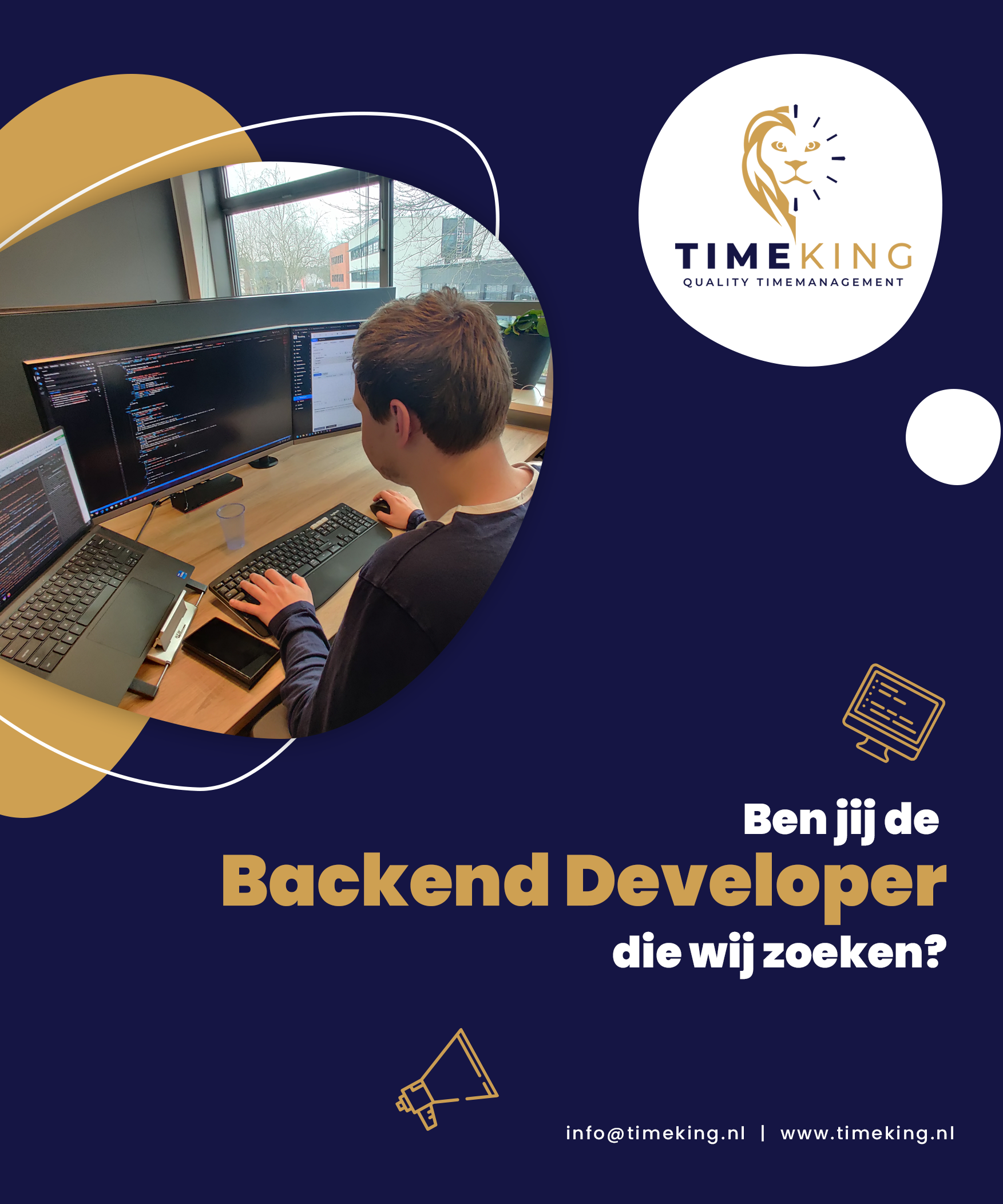 Als back-end developer bij TimeKing ben je onmisbaar in ons development team. Je werkt aan het verbeteren en uitbreiden van onze software, analyseert klantbehoeften en denkt mee over de architectuur. Jij zorgt ervoor dat onze applicatie stabiel, snel en gebruiksvriendelijk blijft. Je vult je dagen niet alleen met programmeren. Ook het onderzoeken van nieuwe technieken en het bedenken van creatieve tech concepten is onderdeel van je werk. Bij TimeKing bieden we namelijk geen standaard producten of diensten aan onze klanten, maar nieuw, creatief en passend maatwerk. Met het gehele team doen we onze uiterste best om in de wensen van onze klanten te voorzien. Daar draag jij dus ook je steentje aan bij!